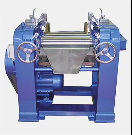 三輥研磨機適用膏體或高粘度物料使用。該機通過水平的三根輥筒的表面相互擠壓,手動式調(diào)節(jié)輥筒之間的間距,以不同速度的摩擦達到研磨效果??裳b有緊急制動按鈕,防止落入異物導致的設(shè)備損壞。輥子使用特殊硬質(zhì)合金澆鑄而成;也可以使用大理石材質(zhì)。傳動采用鏈條傳動、齒輪調(diào)輥。
