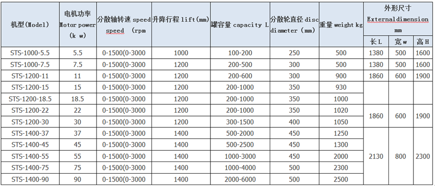 分散機(jī)采用無(wú)級(jí)調(diào)速,有電磁調(diào)速、變頻調(diào)速(如用于水性涂料)及防爆變頻調(diào)速(如用于油性涂料)等多種形式。無(wú)級(jí)調(diào)速功能能充分滿足各工藝過(guò)程中不同的工藝要求,可以根據(jù)不同的工藝階段選擇不同的轉(zhuǎn)速。升降形式:有液壓升降;氣動(dòng)升降。本分散機(jī)對(duì)粉體不加助劑、對(duì)晶包完整性要求較高的物料不適用。